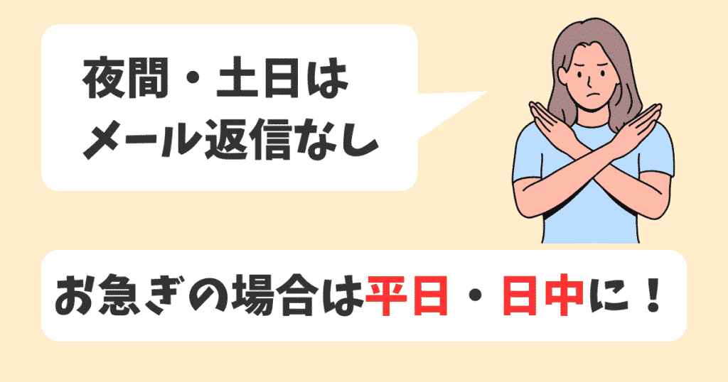 平日の日中は仕事でメールに気付けなくて、スムーズなやり取りができなかったのが原因です。