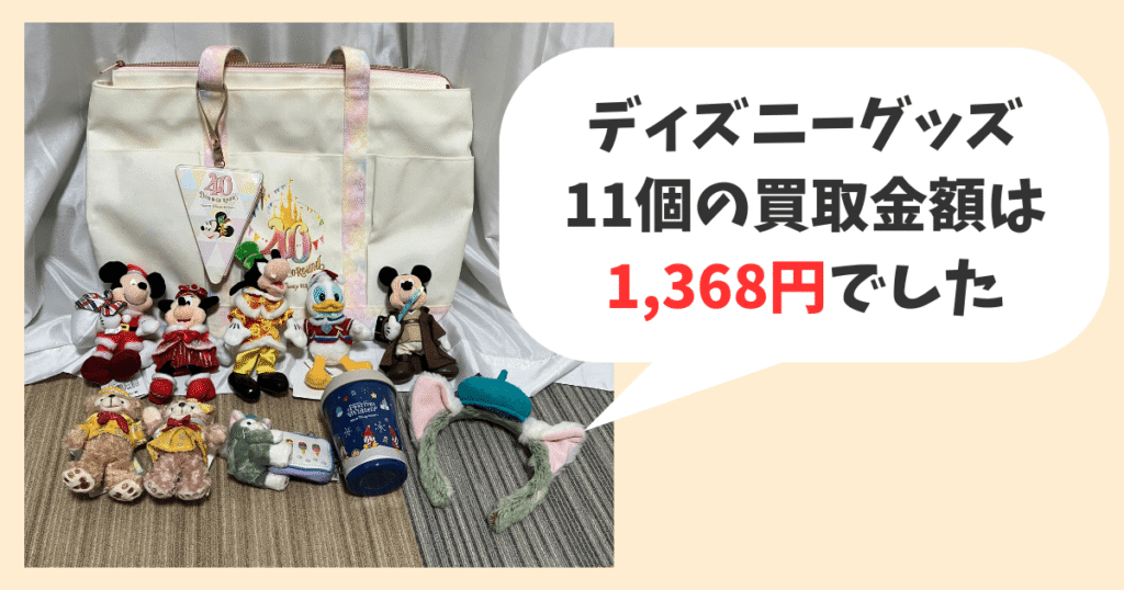 我が家のディズニーグッズの買取金額は総額1,368円と、購入時の定価よりもかなり安い買取金額でした。